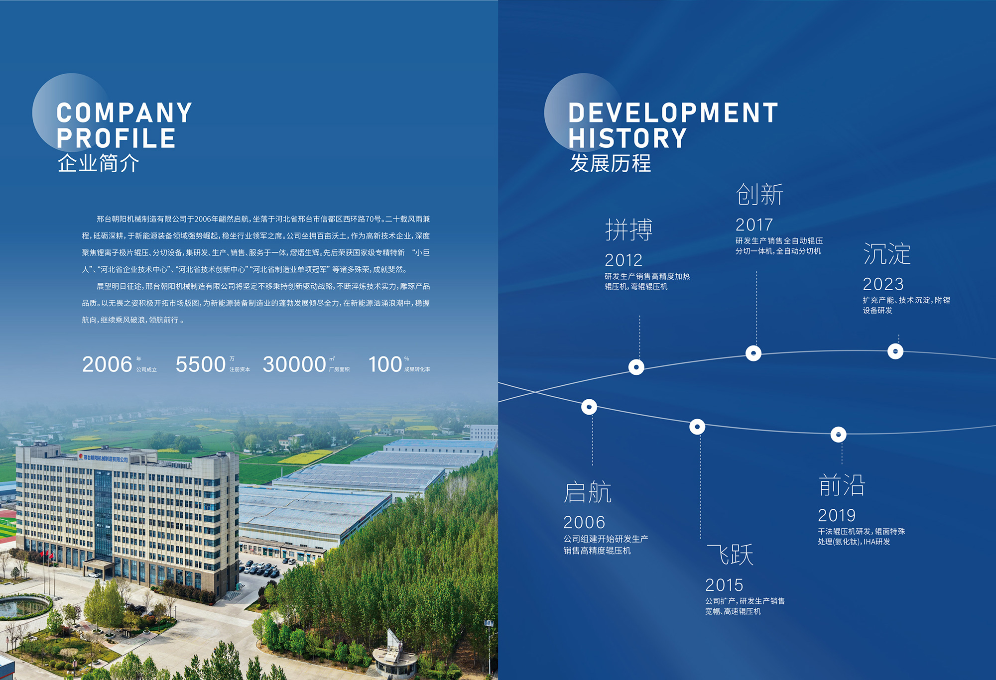 邢臺朝陽機械制造有限公司是新能源裝備領域的璀璨之星,位于河北省邢臺市信都區會寧鎮(邢臺會寧綜合物流聚集地) 70 號,自2006 年成立以來,歷經 20 年砥礪奮進,已成長為新能源裝備領域的行業領軍者。公司占地 100 余畝,是集鋰離子電池極片... [更多>>]